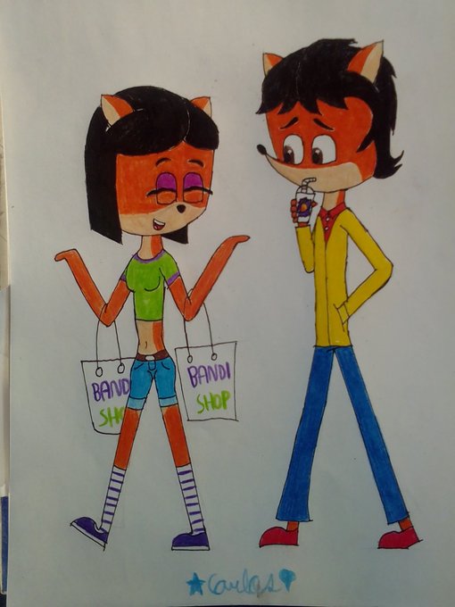 Charly Bandicoot and Liz Bandicoot Going out shopping. 💜❤️ I tried to draw by hand better. 🙂 #CrashBandicoot #CrashBandocootOC #CrashBandicootFanArt #OC #OriginalCharacter #OriginalCharacterArt #FurryArt #LizBandicoot #FanArt