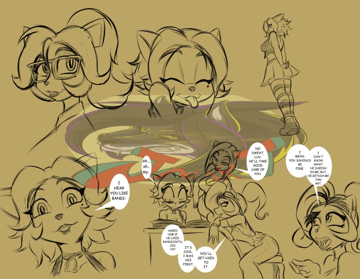Blame @Magaska19 Thanks a lot. Alyssa became an OC waifu. Rarely happens. Sketches here. Sketches there. Welcome to the Bandicoot babe club. No "Smash" Bandicoot. Nope. All clean here. #cocobandicoot #lizbandicoot #crashbandicoot #sketch #doodle #furry #anthro