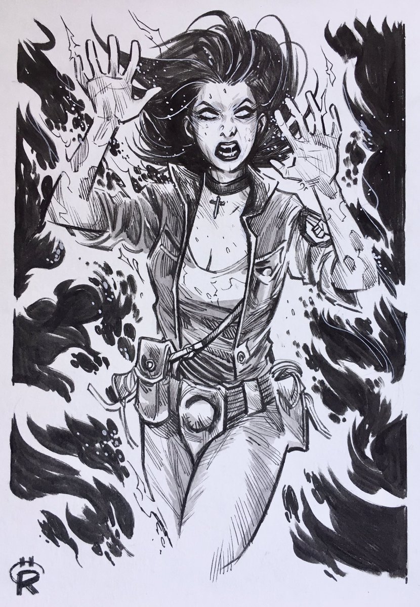 My day 16. Liz Sherman on fire #spookytober A5/ Canson mixed media. Pen, ink and inkwash. A V A I L A B L E ✉️DM #inktober2021 #inktober #lizsherman #hellboy