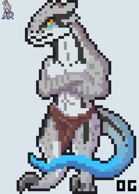 Wanted to do some art, but also needed to take a break from things directly related to my game to help my expand my skillsets. Decided to draw @LluisAbadias's Yu'Hiss. I'm quite pleased with how it turned out! #pixelart #lizardfolk