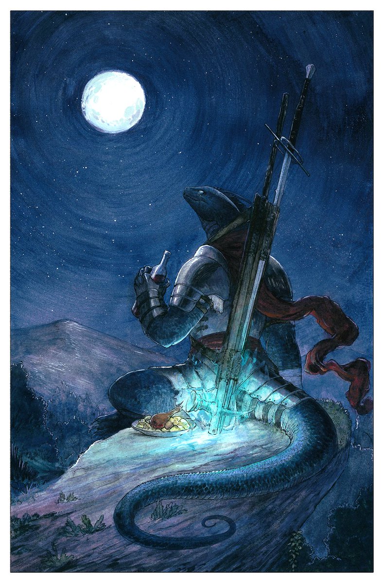 Vampirism prohibits contact with the sun but Tar-Ei is doing his best to find solutions for that problem. After all, he would prefer to miss the daylight for the rest of his life (or undeath) than have his sister suffer alone in the dark. #DnD #Commission #Watercolor #lizardfolk