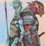 Syan and Rah'Ksen. Their personalities, their abilities, their strengths, their weaknesses are in complete opposition but here they are; together! #Lizardman #DragonBorn #dnd5e (BG are real photos. Shame on me!)