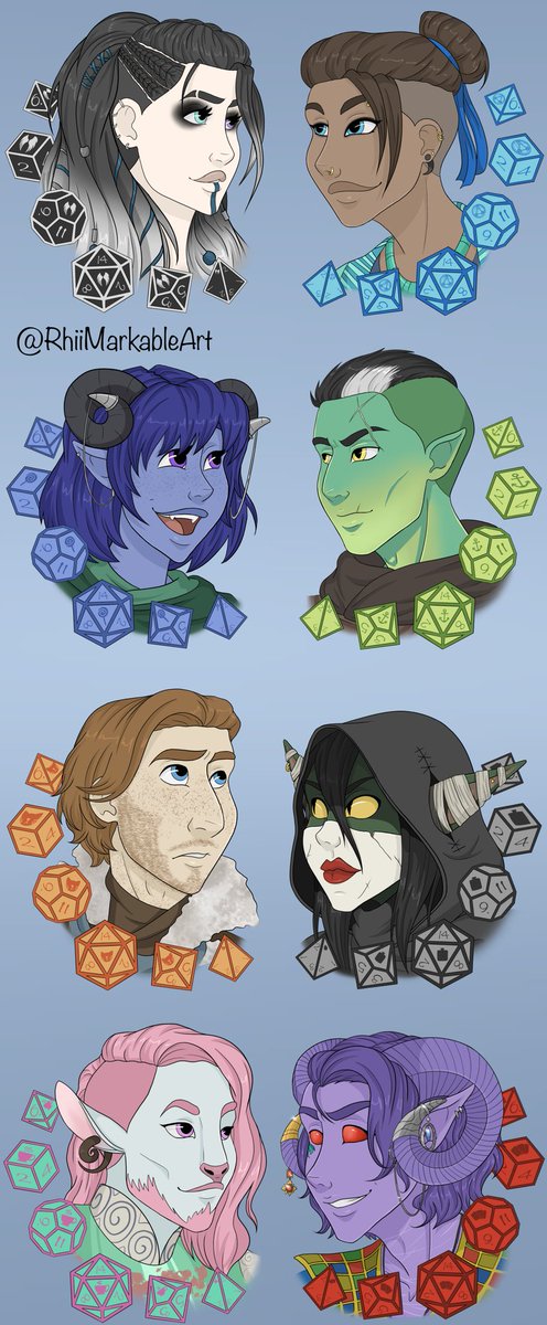 Critical role dice collection all together!! What an epic bookmark hm? 😌 🌩👊🍭🏴☠️🐱🥃🫖🌙 @CriticalRole #criticalrole #critrole #yasha #beau #jester #fjord #caleb #nott #caduceus #mollymauk #longmayhereign #criticalrolefanart