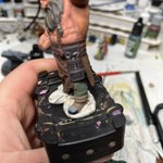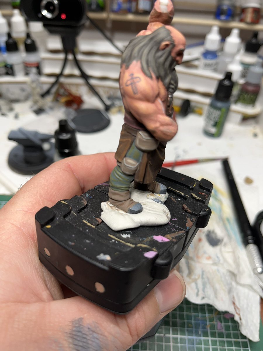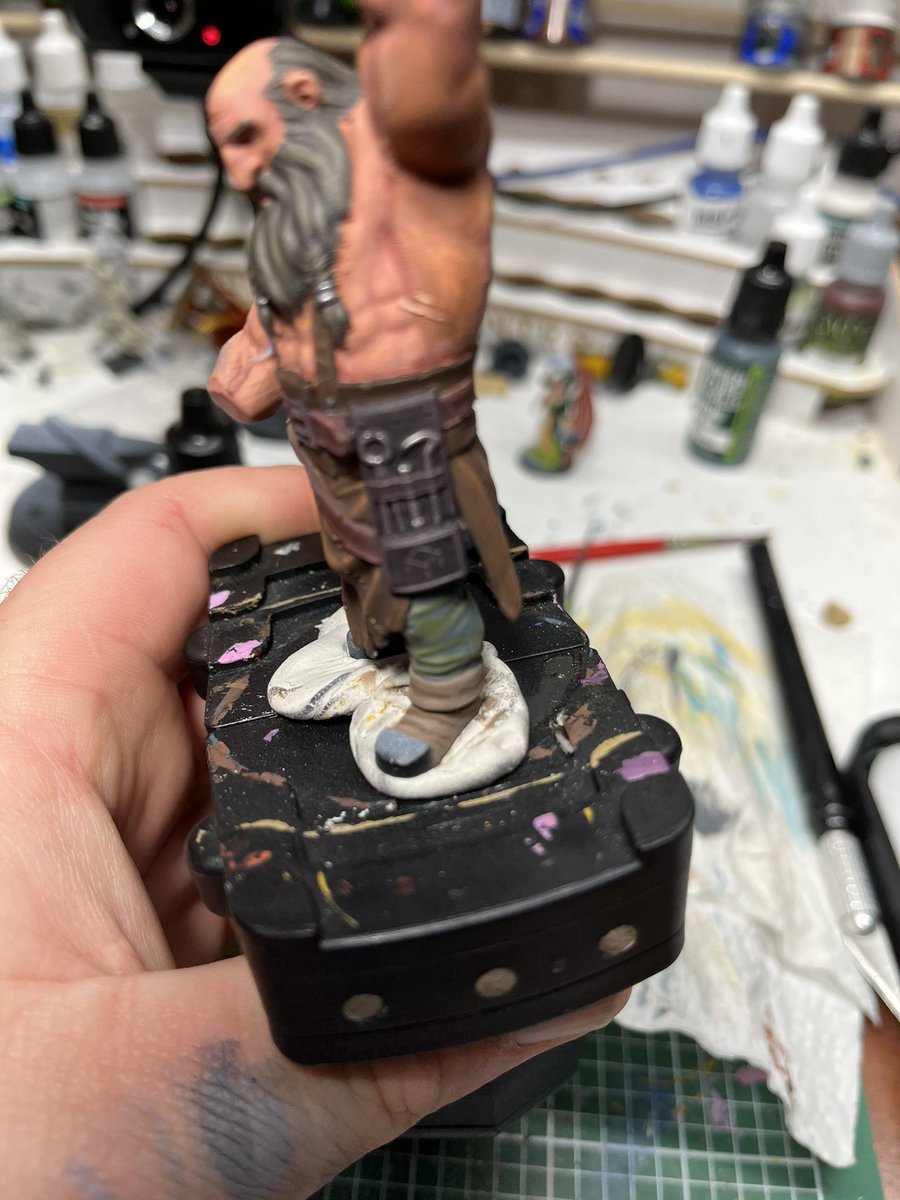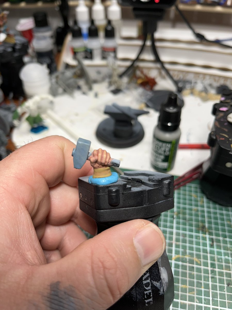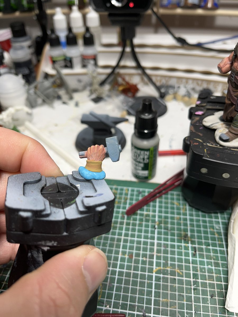 Progress from the stream, I think the hammer turned out ok, the boots are looking good, just need to glaze them and after the toes on the boots the figure proper is done! Then on to the anvil! #miniaturepainting #dndart #lootstudios @Goblins_Mordor