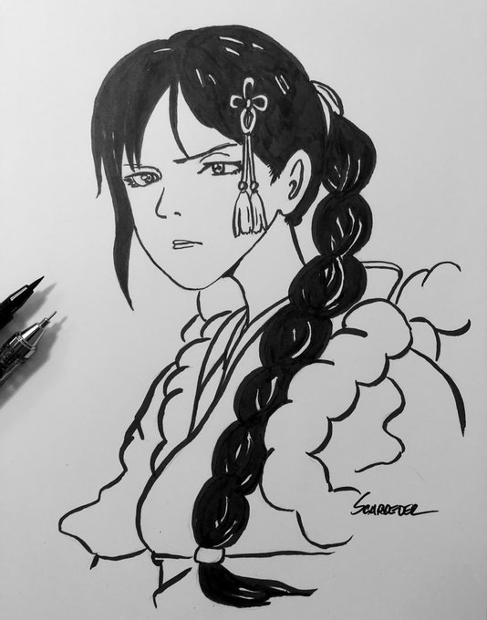 Inktober Day 4: Ocho knows what she must do despite how her father and Lop feel. She dramatically slices off her braided knot showing her allegiance to the Empire. #inktober #inktober2021 #inktober2021day4 #knot #StarWarsVisions #lopandocho #starwarsinktober