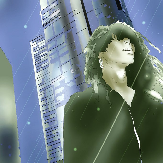 LOSER 雨の中踊ってるのがまたかっこいい! グッズ公開されましたね!パーカー高いけど可愛いんだよなぁ。キラキラの刺繍がなぁ。 #米津玄師 #米津さん #イラスト #ibisPaintX #illustration #LOSER
