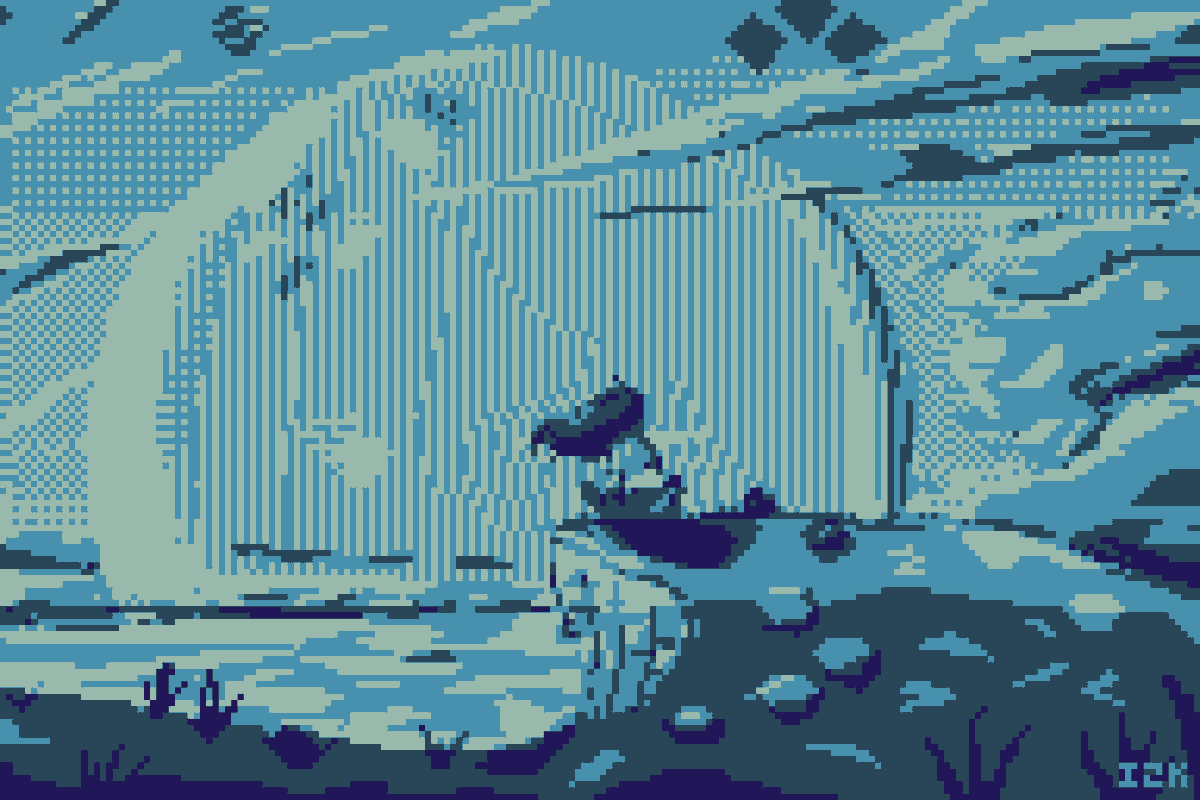 whale.png - 160x144px - 4colors @LospecOfficial #aseprite #Pixaki #lospecdailies #ドット絵 #yogurtGB (palette) #hellfireGB (palette) #NintendoGameBoyArne (palette) #WishGB (palette)