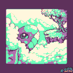 Prompt 2 - #desert. Thought it was a fun prompt mixed with an interesting color palette (#hortensiadpalette). Never did landscaping before. Learned a lot. lol I forgot how long dithering took... "Deserted Hologram." #pixelart #voxelart #textmode #lospecdailies