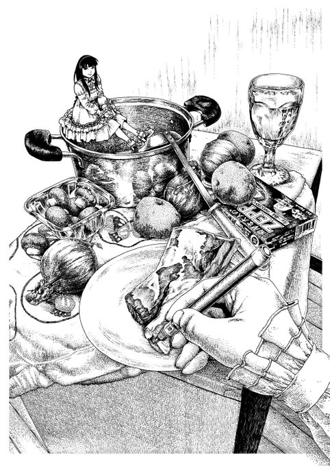 #作業中 #Lost_in_the_Picture Part 2 #Sketch 4 hours+ #Pendrawing 5 hours 静物の鉛筆デッサンは美大受験時によく描いたけど、ペンで描くのははじめて。 matsudanozomu.com/?cat=25 #Pendrawing #illustration #art #artwork #pen #drawing #dessin #rotringpen #松田望の絵 #ペン画 #絵 #イラスト