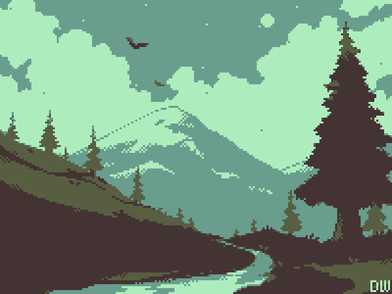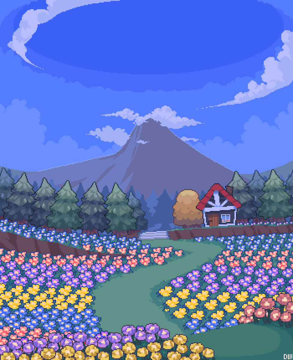 Hello! I took up an old (VERY OLD) sketch that I had to finally finish it. This drawing is inspired by a work by mumu0909 (deviantart user) #LovelyLandscapes #pixelart #ドット絵