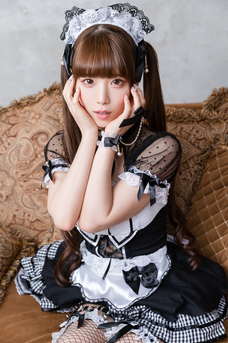 大好きな衣装屋さんマリームーンの今月発売される新作メイド☕️ 撮影会で着させて頂きました🥰 レースにギンガムチェックにドット柄にリボンにとってもかわいいよ🤍🖤 #Lovenir撮影会 #malymoon