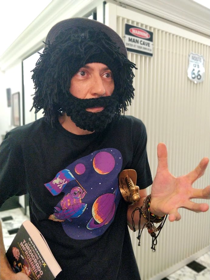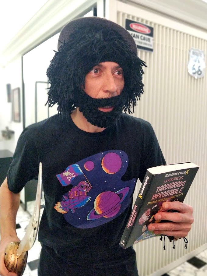 Ieri mi è arrivato l'ultimo libro di @BarbascuraX "La Tempesta Imperfetta", ma per fare le prove costume per Halloween ho usato quello su Vincenzo. Non so cosa ho fatto 🙈 Il Testimone di Geova vestito da Capitano che predica la scienza al citofono, MALE? #Cosplay #LuccaCG22