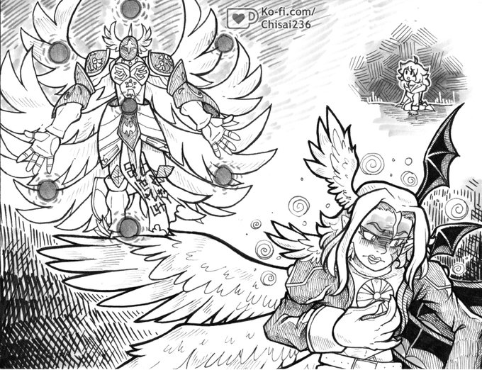 🌸 "The Poppy Flower of Kindness" - (08/31) "Murder is against Yggdrasil's will." Seraphimon spoke, as he took aim at the injured Lumen. Who was still reeling from the venom inflicted by Manticoremon. #digimon #digimonfanart #lucemon #seraphimon #poppy