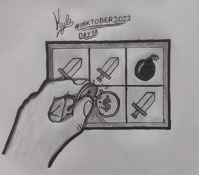 Inktober day 18= Scrape 👍🍀🎟️ #ArtistOnTwitter #traditionalart #traditionalartist #blackandwhite #inktober2022 #inktober #inktober2022day18 #scrape #luck #lucky #luckyticket