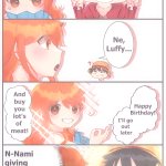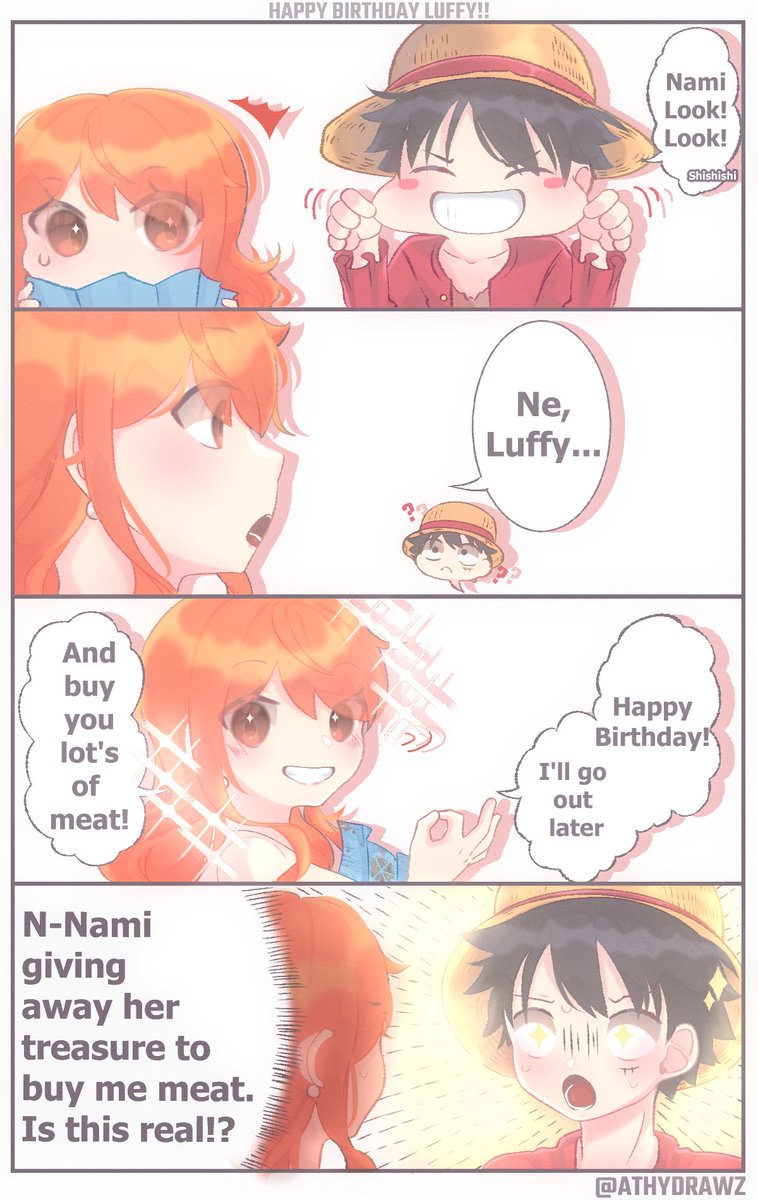 The Birthday Boy's Luck!? 🍰🍖 -- #luffyxnami #lunami #DigitalArtist #ルナミ #namixluffy #luffynami #lunaonepiece #ルフィ #ナミ #ONEPIECE #luffy #nami #luna #art #Onepiecefanart #LuffyDay #HappyBirthdayLuffy