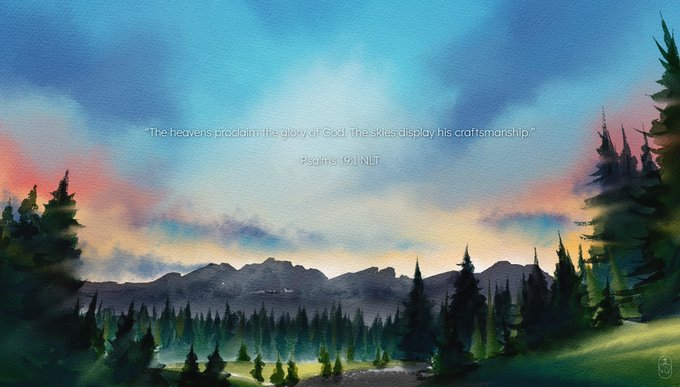 Dawn Scenery - Watercolor style digital painting #procreate watch the painting time-lapse and behind the scene on my Youtube channel. #Watercolor #digitalart #digitalpainting #illustration #catair #lukisan #painting #aquarelle #dawn #watercolour #水彩 #Scenery #sky #mountain
