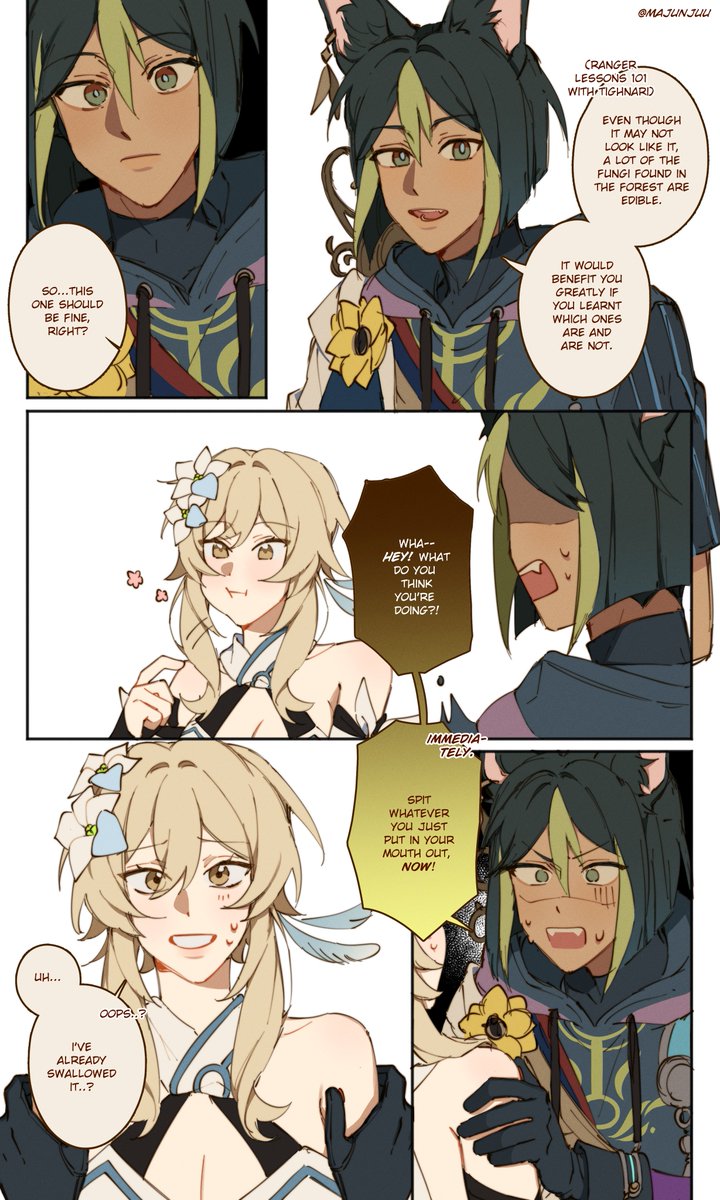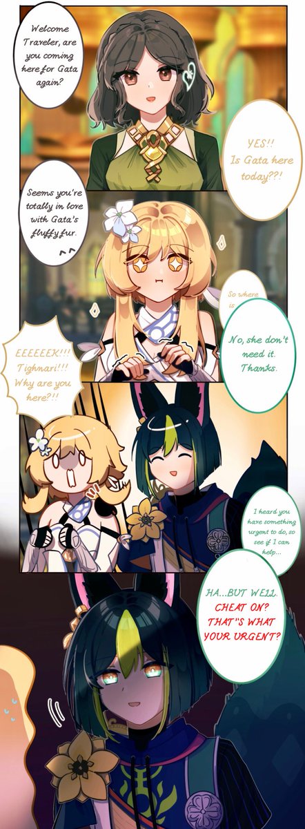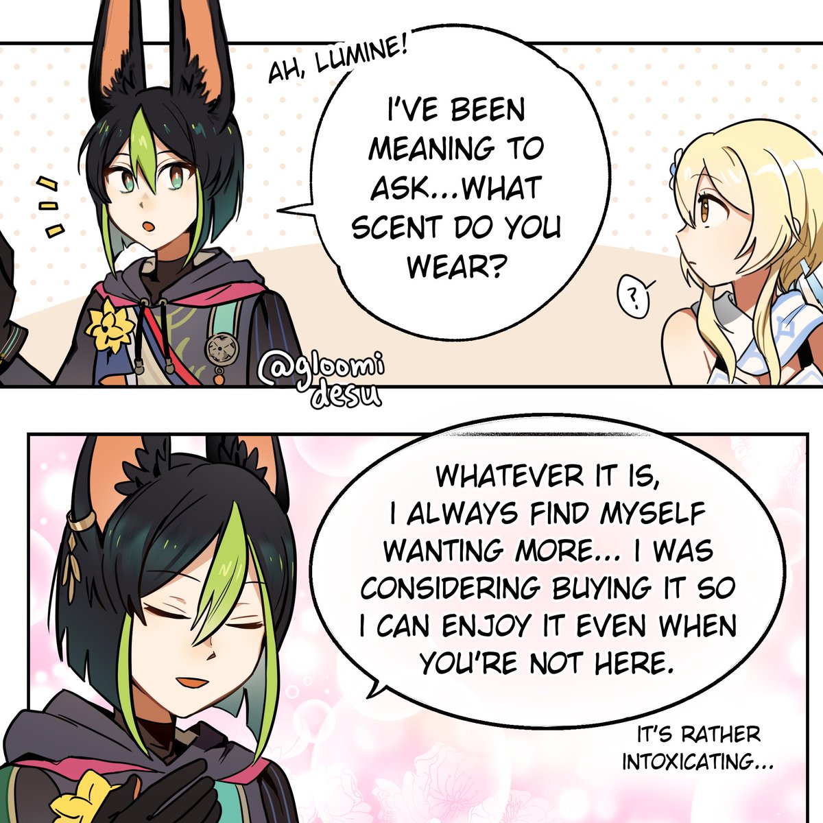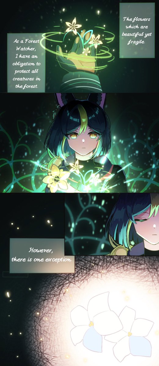 Tighnarilumine Short comic: Mr. Fennec and the flower. “May my love surround you like sunshine and give you glorious freedom.” **WARNING OOC** #genshinimpact #genshin #genshinimpactfanart #Tighnari #Lumine #Luminari #tighlumi