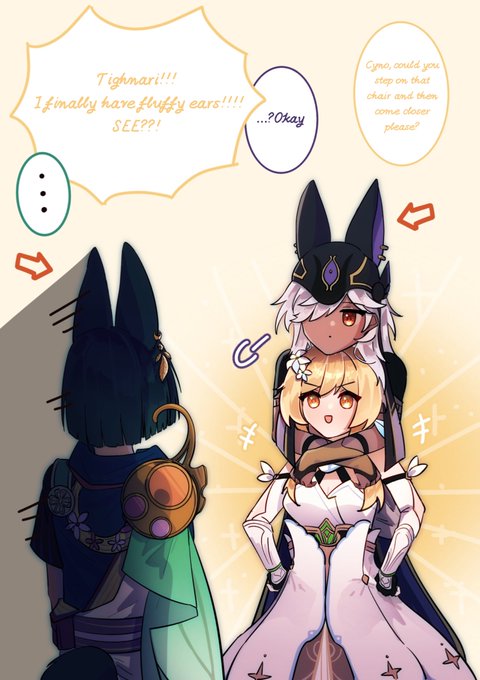 External ears. Tighnari: I think there are something wrong in her head but I can help nothing, that’s pity. Cyno: Well that’s cute, isn’t she? #genshinimpact #genshin #genshinimpactfanart #Tighnari #Cyno #Lumine #tighlumine #luminari #cynolumi