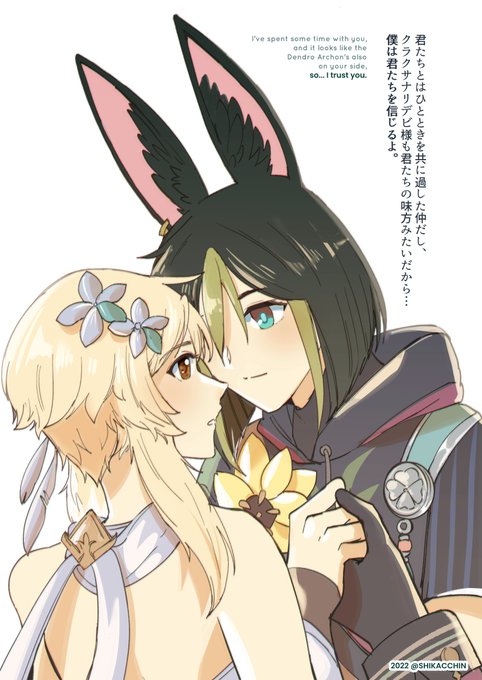 ⭐️ Tighnarilumine 3.0 update hourly countdown 3 He may want a kiss too…? #GenshinImpact #genshinimpactfanart #genshin #Tighnari #lumine #tighlumi #luminari