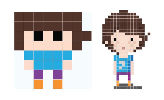 A little lunchtime #pixelart. My protagonist was tricked by the #AI to create a virtual version of herself in the "game." Here's an 8x8 version of her. Not sure I can get her any lower res. #amwriting #LunchTime