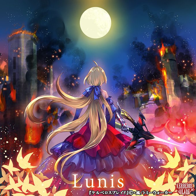 ご依頼ありがとうございます!大変お待たせしてしまい申し訳ありません…!Lunisシリーズ、今回は春、梅の花と過去の戦跡をイメージして描きました。 #仕事絵 #ケルベロスブレイド #Lunis