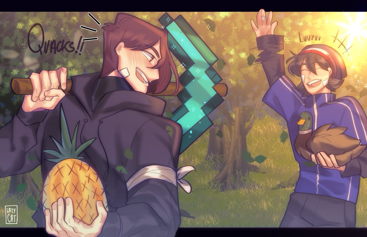 Me hace feliz saber que puede volver este dúo 🌸🍒🌸🍒🌸 #Luzufanart #Axozer #Luzu #Axozerfanart #SquidcraftGames2 #SquidCraft2