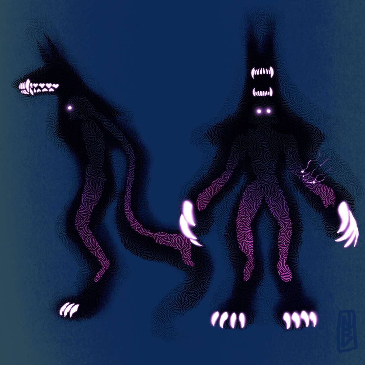 And lastly, here’s his “wolf” form. I thought of it like a curse from a mythological “black dog,” so I thought it would be neat if he was enrobed in shadow, and not just… a dog lmao #conceptart #characterdesign #lycanthrope #dnd #dndart #oc #originalcharacterart