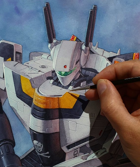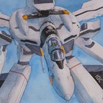 VF-1S Valkyrie Hikaru Ichijo version. I couldn't resist playing with photoshop to do this 😁 Prints: society6.com/product/vf-1s-… - #macross #mecha #robotech #robot #anime #manga #watercolor #illustration #art