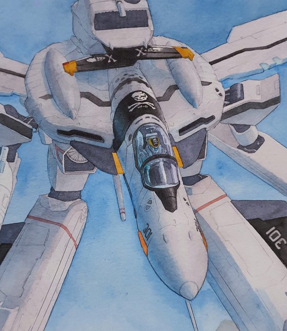 VF-0S Phoenix from Macross Zero. Watercolor. Prints here: society6.com/product/vf-0s-… - #Macross #zero #watercolor #illustration #mecha #mech #robot #valkyrie #anime #manga #robotech