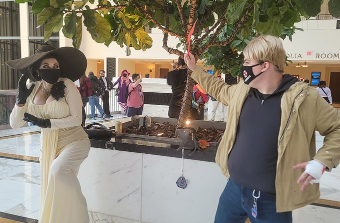 Family get-togethers must be... interesting #residentevil #re8 #residentevilvillage #dimitrescu #cosplay #magfest #magfest2023 #ladydimitrescu #alcinadimitrescu @re_games
