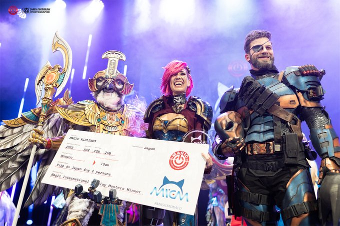 The great MAGIC International Cosplay Masters 2023 Champion , @Sakuraflor_ (The Netherlands) together with 2nd place @Erza_Cosplay (Germany) and 3rd place @ZephonCos (France) You are amazing !! #MAGICMONACO #MAGIC2023 #MICM #MICM2023 #Cosplay #Monaco Pic : @AxelClergeau / MAGIC