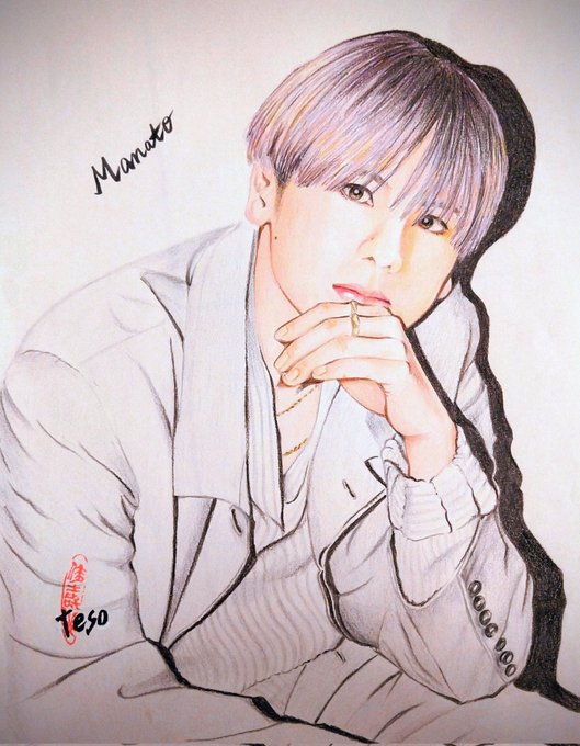 smartでBE:FIRSTを撮影した山仲竜也さん( instagram.com/tatsuya_yamana… )の写真がほんと素晴らしい😭✨失礼のないよう心を込め丁寧に描かせて頂きました🙏 #色鉛筆画 #colorpencildrawing #BEFIRSTファンアート #MANATO #マナト