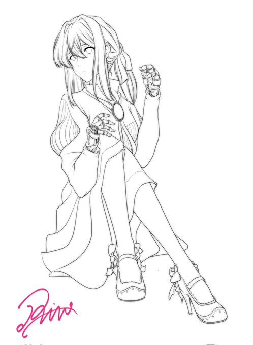 大掃除も一区切りついたので MAYLAさんのファンアートの 線画描いてました。 右手とスカートは要修正。 ポージング的におしり隠すの 大変でした💦 #ヴァイオレット・エヴァーガーデン #イラスト #絵描きさんと繫がりたい #MAYLA #MAYLAヴァイオレットFANART