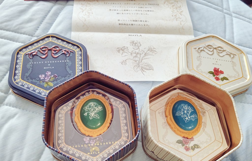 MAYLAさんのヴァイオレット・エヴァーガーデンイラコンの賞品のチョコレート届きました✨ うわぁ どっちもめちゃくちゃ可愛い〜〜🥰 大切に食べて 缶は小物入れにしよ✨ 参加してよかった〜! ありがとうございました!! #MAYLAヴァイオレットFANART