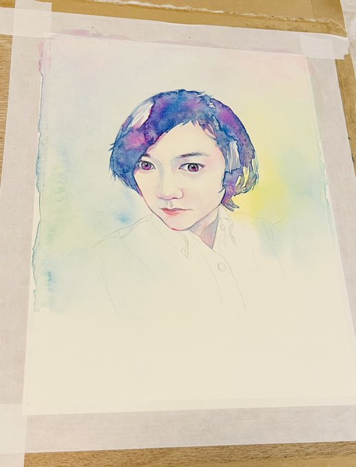 ベースになる色を塗り進めております! 最近本業が忙しくて疲労感がすごい #MBラボ1日1時間チャレンジ 187.188日目 #アナログイラスト #水彩 #似顔絵 #絵描きさんと繋がりたい#イラスト好きさんと繋がりたい