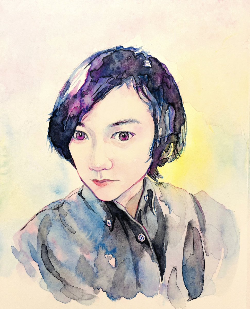 髪の毛少し塗り重ねて、背景や服を塗り進めました🎨🖌透明水彩 寝々ねねこさん@Ne____x4 #ファンアート #MBラボ1日1時間チャレンジ 168日目 #アナログイラスト #水彩 #似顔絵 #絵描きさんと繋がりたい #イラスト好きさんと繋がりたい #ポートレート