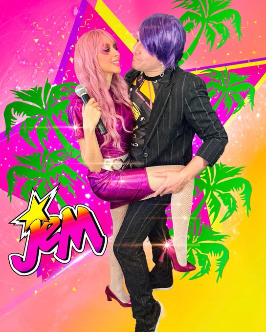 My DOLL of a #MCM who can manage all of me including my OCD, perfectionism, very particular and sometimes neurotic behavior. Most importantly goes along with these costume ideas! @stitcheddrummer 💖👾 #DeckMo #ManCrushMonday #rio #jem #jemandtheholograms #couplescosplay #cosplay