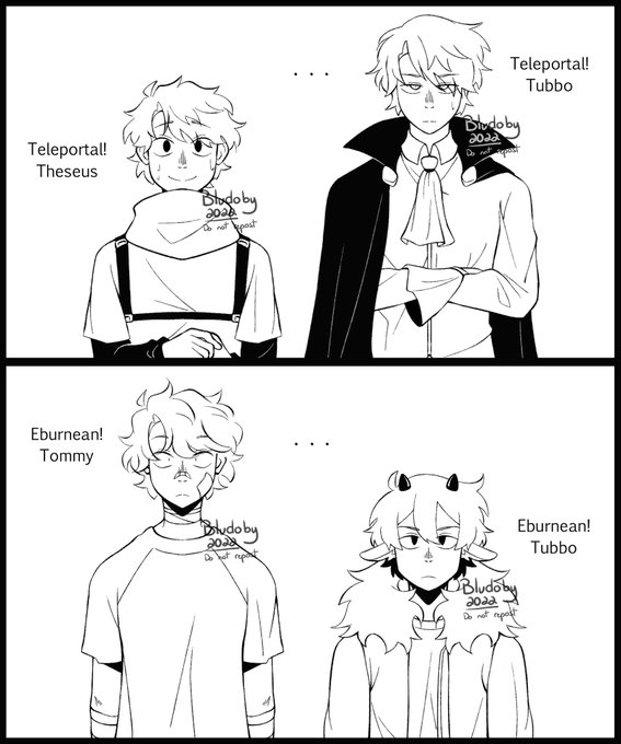 [Familiar face's visit] Collab with @Kinanyann_ !! My clingyduo from my AU (#eburneantommy) meeting their clingyduo from their AU (#teleportalau)!! Check it on twt and insta!! #tommyinnitfanart #tubbofanart #clingyduo #clingyduofanart #dsmp #mcyttwt (1/3)