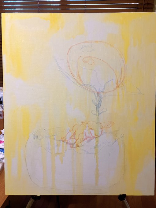 新作制作開始! 花瓶のキャンバス展に参加することになったので! 黄色! 和紙パネル #MDペーパープロダクト #色鉛筆 (@MIDORI_store_jp ) #アクリル絵具 (@HolbeinArt ) #絵描きさんと繋がりたい #創作クラスタさんと繋がりたい #制作過程の写真だけで興味を持ってくれる方へ届け