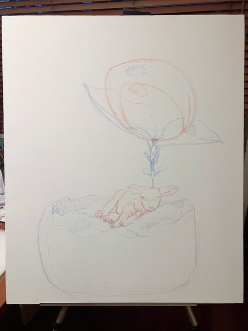 新作制作開始! 20号キャンバスを過去に描いた作品を制作中! 背景どうしようか #キャンバス #MDペーパープロダクト #色鉛筆 (@MIDORI_store_jp ) #アクリル絵具 (@HolbeinArt ) #絵描きさんと繋がりたい #創作クラスタさんと繋がりたい #制作過程の写真だけで興味を持ってくれる方へ届け
