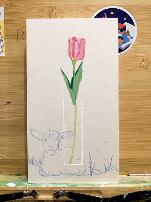新作制作開始! 花瓶のキャンバス展に参加することになったので! まずは一輪 和紙パネル #MDペーパープロダクト #色鉛筆 (@MIDORI_store_jp ) #アクリル絵具 (@HolbeinArt ) #絵描きさんと繋がりたい #創作クラスタさんと繋がりたい #制作過程の写真だけで興味を持ってくれる方へ届け