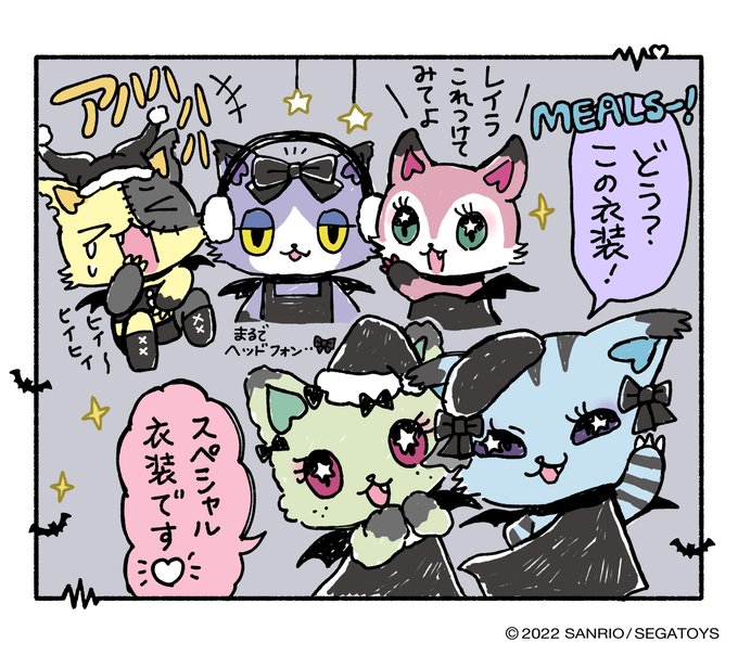 / #MEALS 💗💙💛💜💚 #MerryXmas 🎄🎅🎁 #HappyHoliday 💝🎂 #NyaightmareChristmas☆☆☆ ちょっぴりダークなクリスマス衣装だにゃん🐾 衣装のデザインはいつもみんなで考えているんだって! \ #Beatcats #ビートキャッツ #ファンクラブ #アプリ #漫画 #ネコスタ