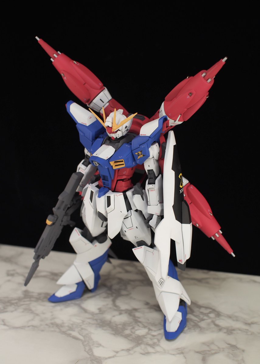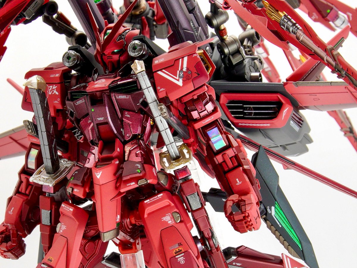 MG ゲルググウェルテクス これ作った時撮影が一番上手くいってなかったので撮り直し。赤は難しかったんですが普通に撮れるようになりました。 素体はスタイルバランス変更、股関節新造、バックパックはプラ板スクラッチ、バインダーは3Dプリンター。 #MGはいいぞ #ガンプラ #ジョニーライデンの帰還