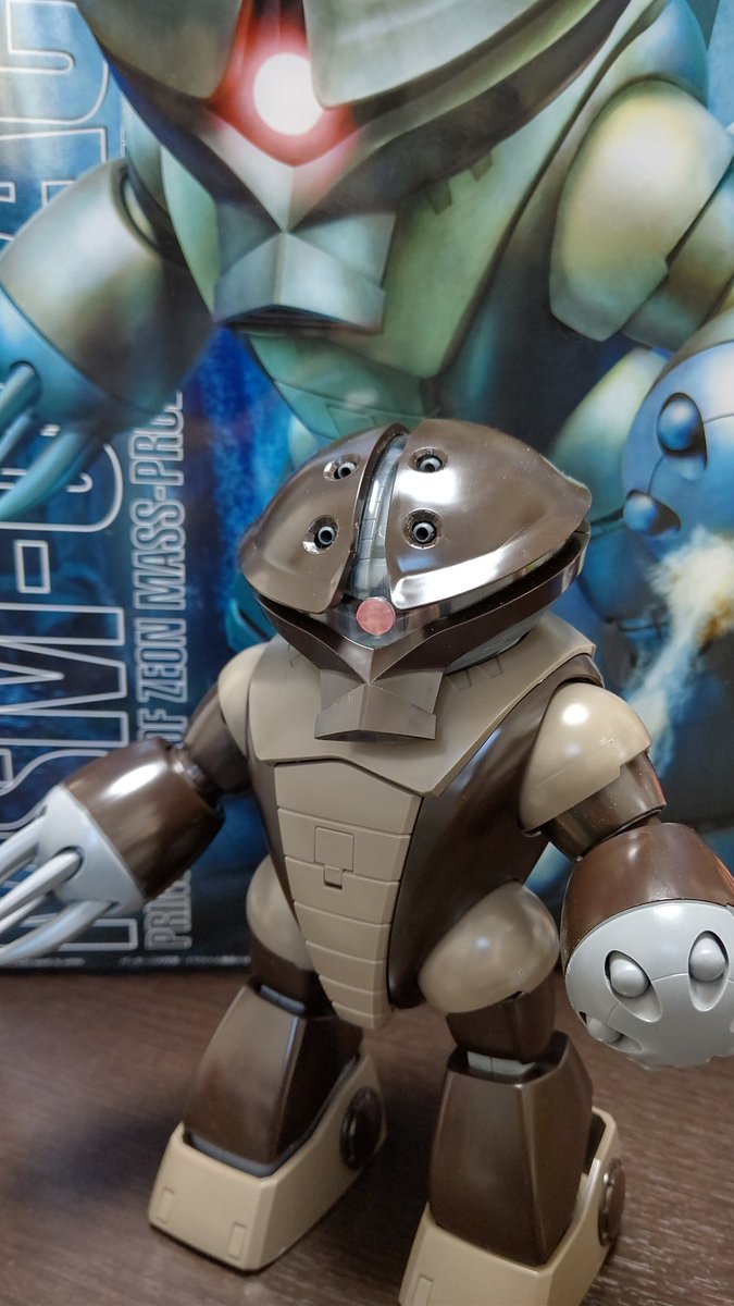 昨晩未明にアッガイが完成しました!!😆 多少のディテールの彫り直し、薄らグラデ、ガンダムデカール、モノアイ加工で仕上げました。ちょっとモノアイ大き過ぎかな?🤔 #ガンプラ #ガンプラの画像貼るとRTされると聞いて #MGアッガイ