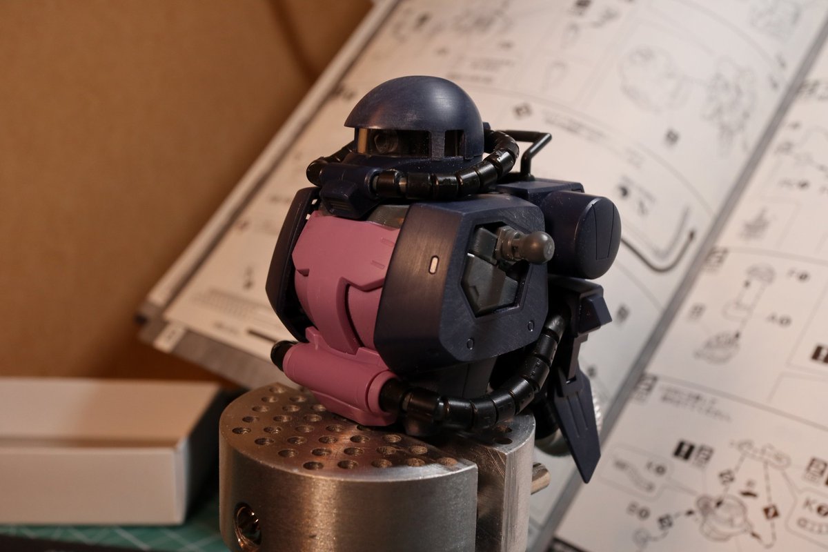 MG黒い三連星ザク進捗! 今日はバックパックと頭部〜 バックパックはもうちょい別パーツ化してくれると嬉しいのにҨ(´-ω-`) 動力パイプはメタルパーツ使いたいなぁ それではおやすみなさい( ˘ω˘ )zzz #ガンプラ #ガンプラの画像貼るとRTされると聞いて #MG高機動型ザク #MG黒い三連星ザク