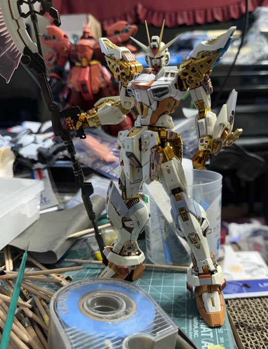 やっとできた('-'v) MGEXストライクフリーダム!! ゴールド部分は、ツヤあり・その他は、つや消しで仕上げてみました。 これから色々写真撮っていきます( *˙ω˙*)و グッ! #ガンプラ好きな人と繋がりたい #ガンプラの画像貼るとRTされると聞いて #MGEXストライクフリーダム