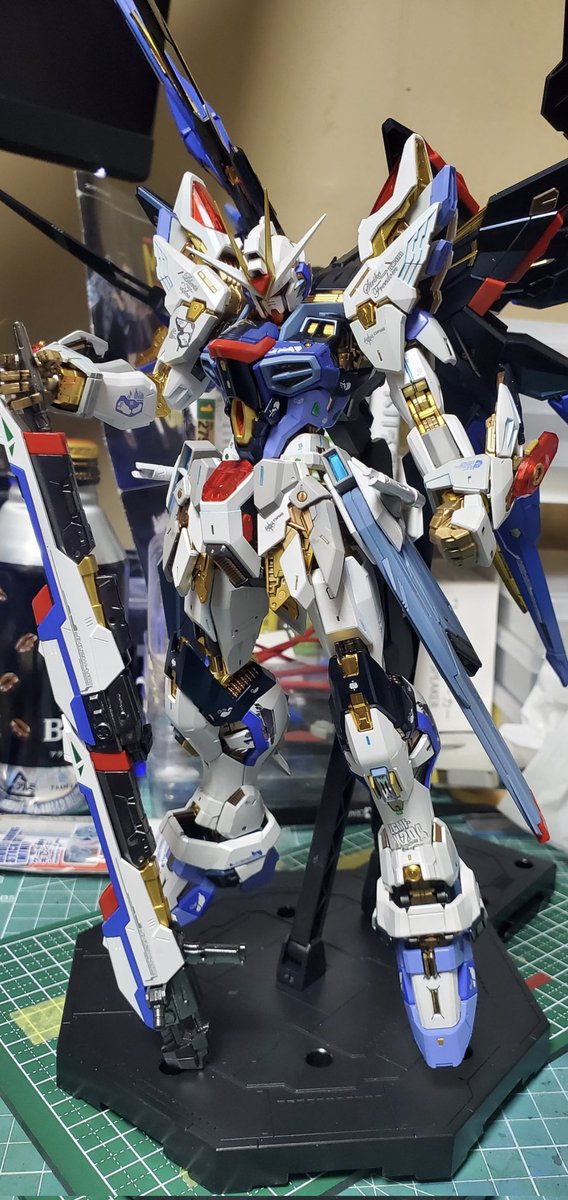 MGEXストライクフリーダム完成しました(*^^*) ゴールドのフレームとディテールがめっちゃかっこいい!こりゃ買って良かった #ガンプラ #ガンプラ好きな人たちと繋がりたい #ガンプラはどんな自由な発想で作ってもいいんだ #ガンプラの画像貼るとRTされると聞いて #MGEXストライクフリーダム