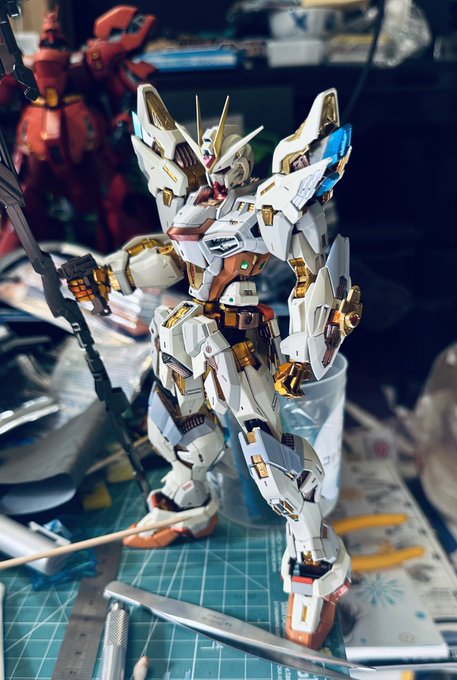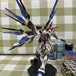 デカール貼り、少しガンマカ塗装、トップコート終わりヾ(*´∀`*)ノ 一応の完成٩(>ω<*)و ・・・光の羽作るの…挑戦するか迷う…(何かを参考にしたとて初の挑戦になる… #ガンプラの画像を貼るとRTされると聞いて #ガンプラ好きな人たちと繋がりたい #MGEXストライクフリーダム