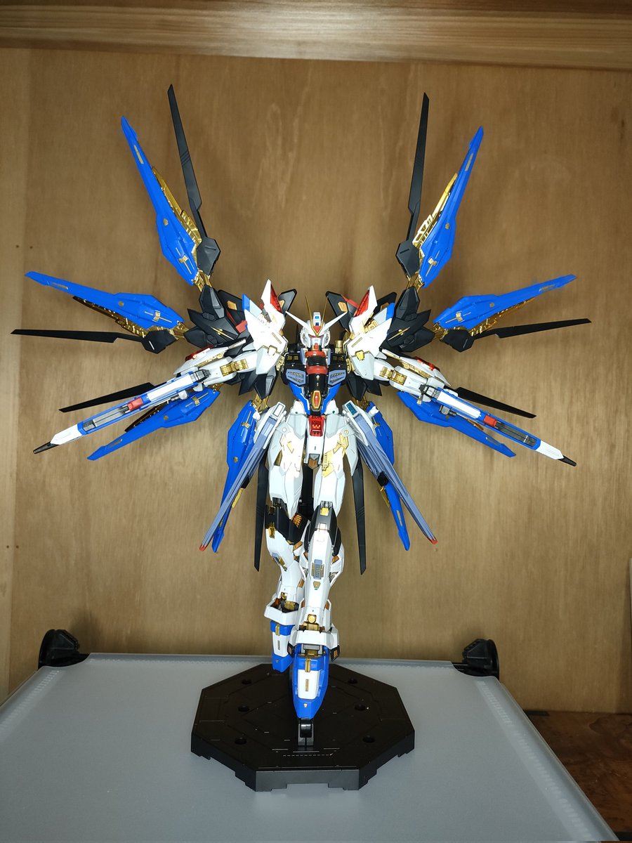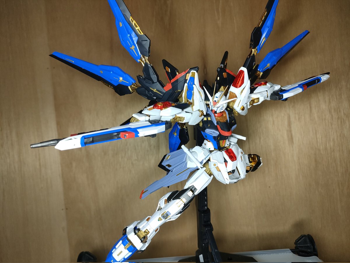 MGEX ストライクフリーダム 完成。もう何も言う事ないわ…神々し過ぎる。 というかフレームの上から装甲被せても同じポージングが出来るのヤバ過ぎるでしょ #ガンプラ #MGEXストライクフリーダム #MGEX #MGEXストライクフリーダムガンダム #ガンプラの画像貼るとRTされると聞いて