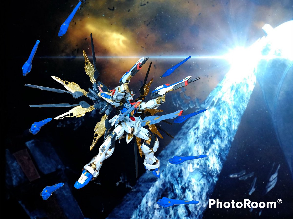 PhotoRoomでスタンドや壁を消して背景に宇宙を加えてみたよ #ガンプラ #MGEXストライクフリーダム #MGEX #MGEXストライクフリーダムガンダム #ガンプラの画像貼るとRTされると聞いて